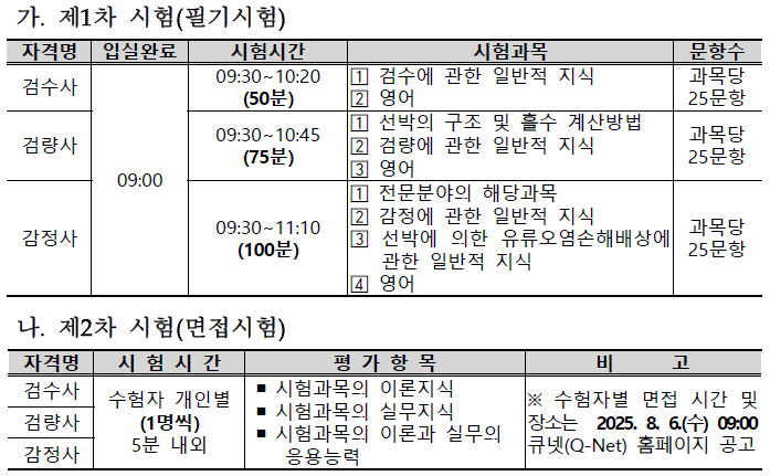 - 제1차 시험 : 2025. 7. 2.(수) 09:00