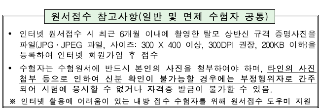 ※ 원서 접수기간 중에는 24시간 접수 가능[단, 원서접수 시작일은 09:00부터, 원서접수 마감일은 18:00까지 접수 가능]하며, 접수기간 종료 후에는 응시원서 접수 불가