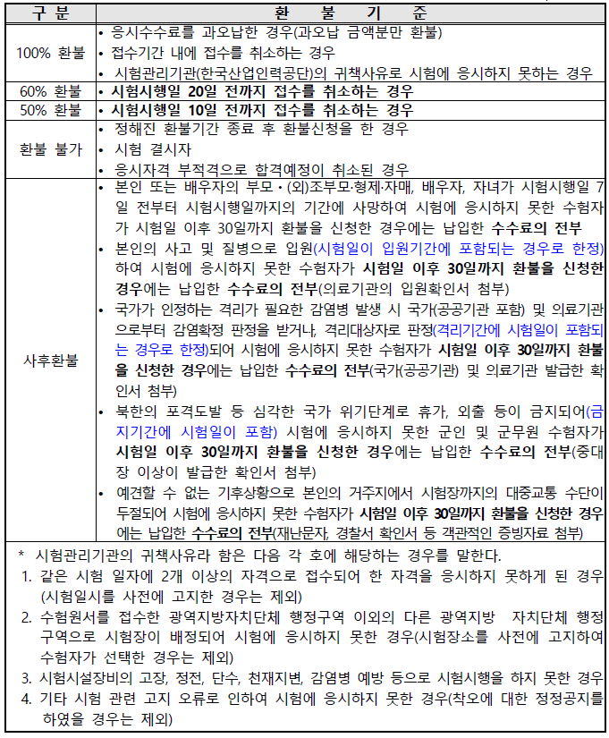 ※ 접수 취소 및 환불은 시험 시행일 10일 전까지만 가능